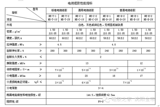 電絕緣膠性能表