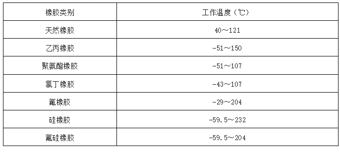 常見橡膠的工作溫度范圍